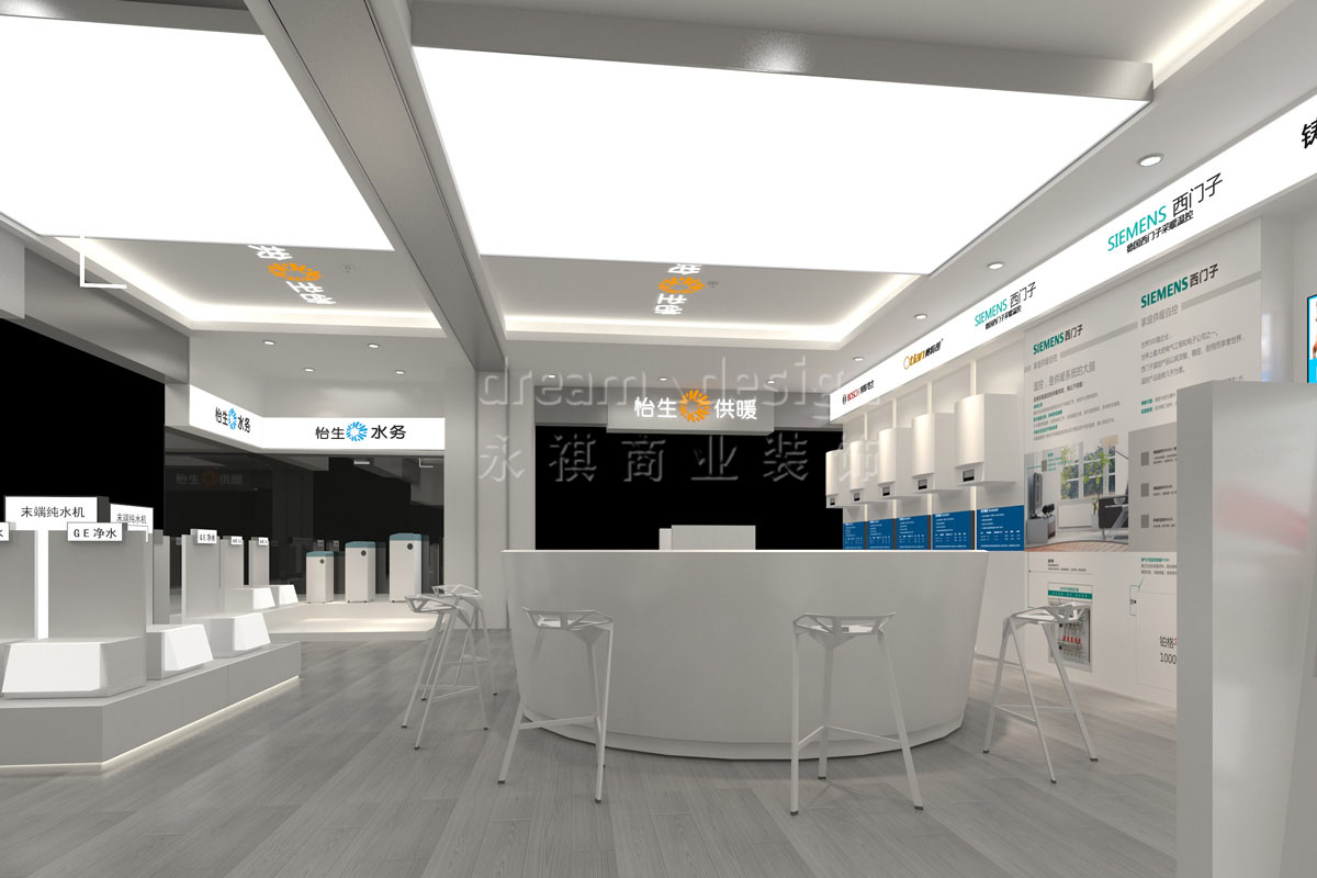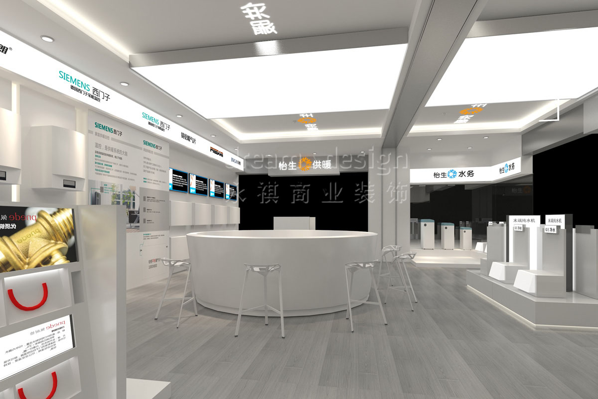 永祺商業(yè)裝飾為怡生暖通營(yíng)造了一個(gè)極富科技感的整體視覺(jué)環(huán)境,同時(shí)兼顧消費(fèi)者體驗(yàn)的便利性。多重感官的疊加,讓人們真正感受到--家有怡生,溫暖一生。