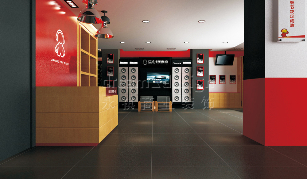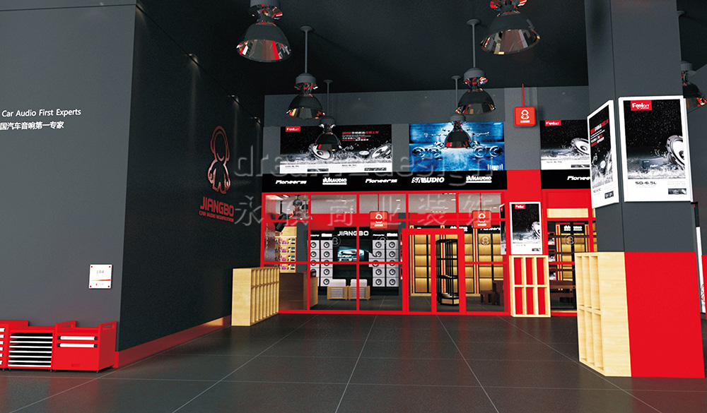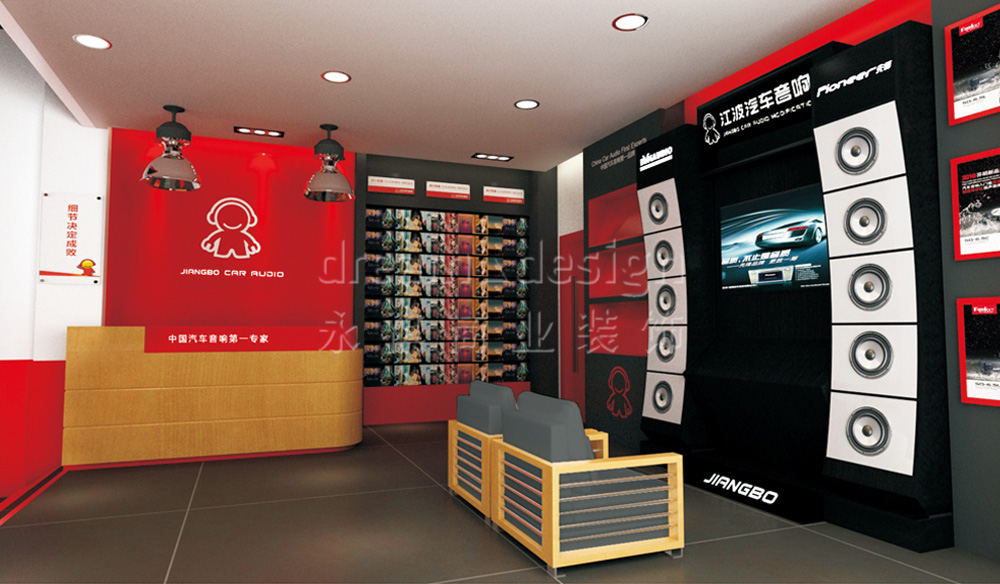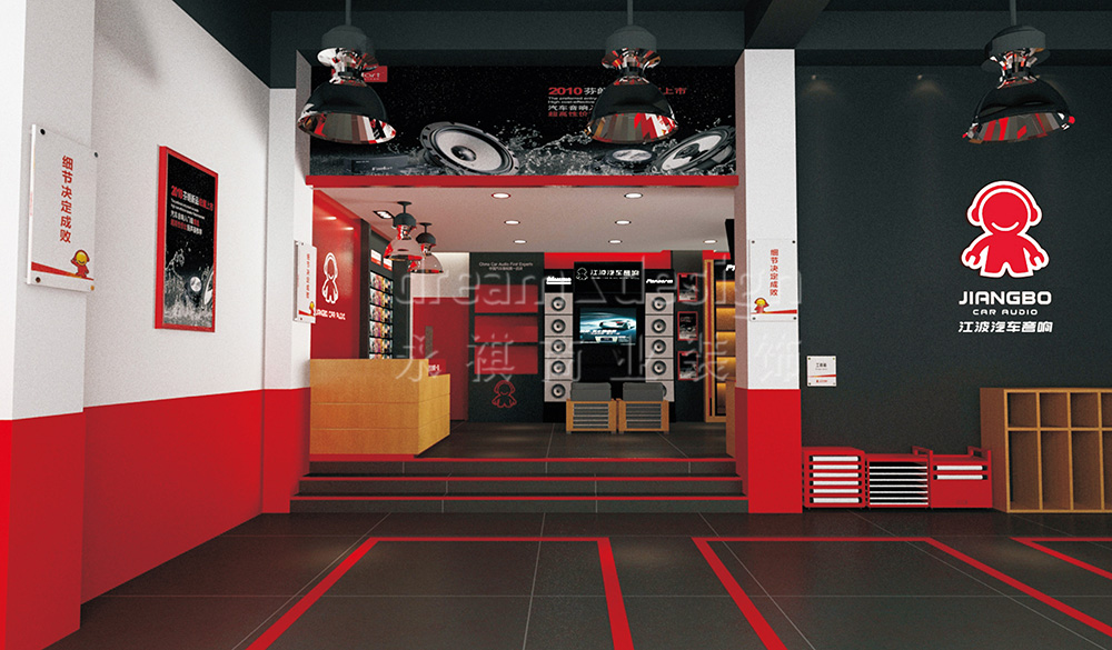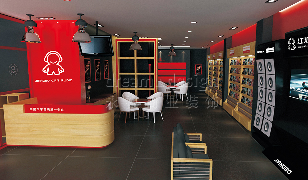 永祺商裝為其進(jìn)行了VI設(shè)計(jì)、店面設(shè)計(jì)與施工。在色彩的選擇、用材的考究以及空間的布局上,永祺商裝始終抱著嚴(yán)謹(jǐn)?shù)膽B(tài)度追求極致,力求完美體現(xiàn)江波“中國汽車音響第一專家”的形象。