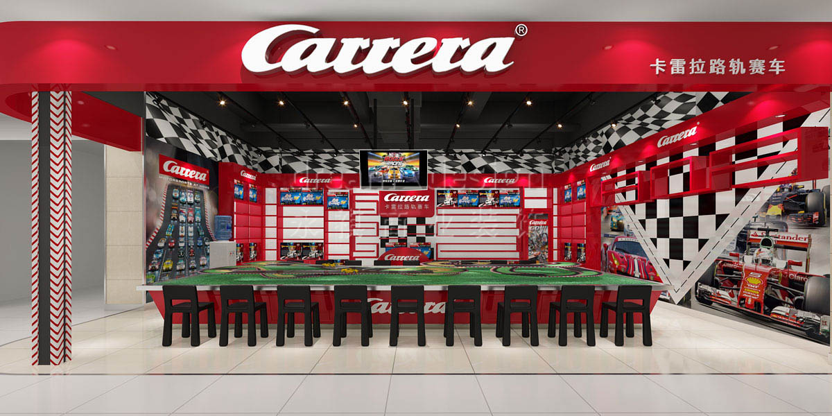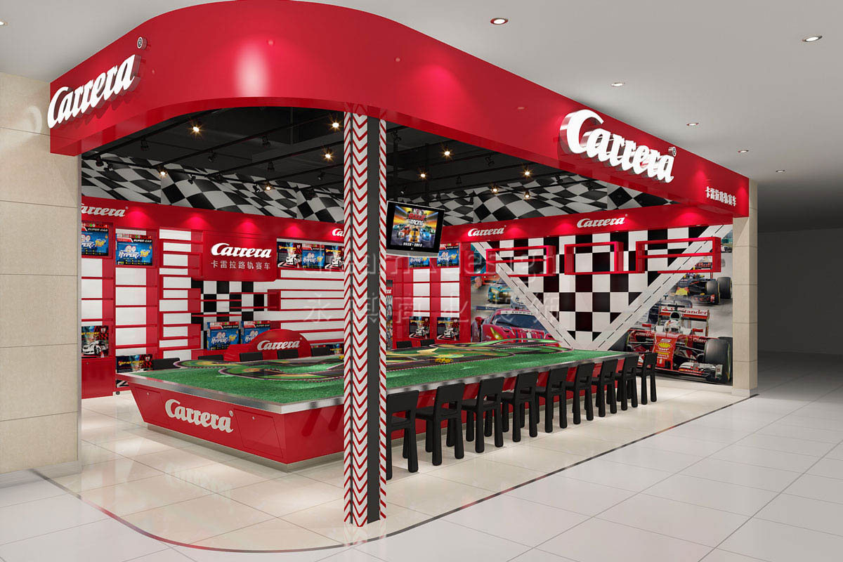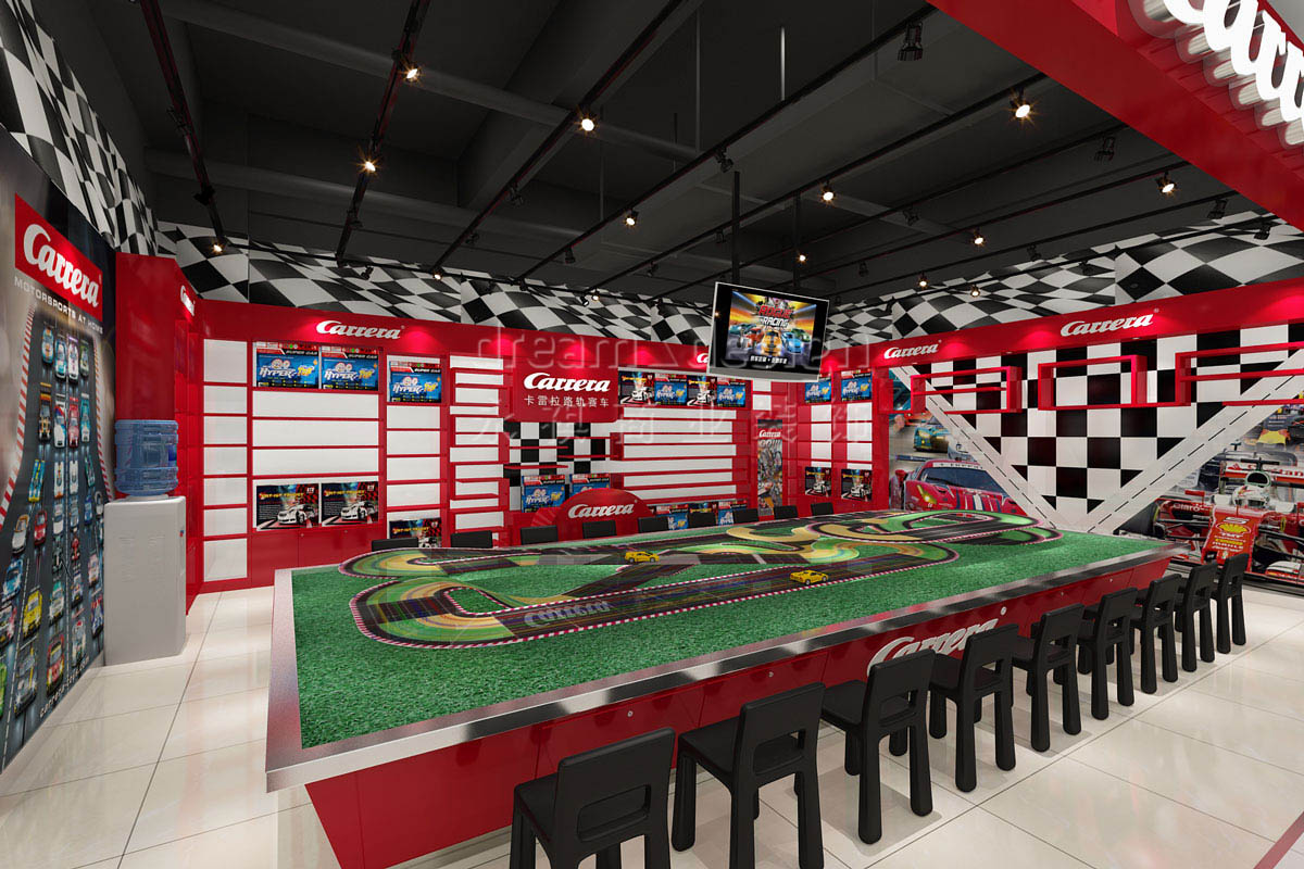 永祺商裝設(shè)計(jì)師以紅色為主色調(diào)突出卡雷拉路軌賽車(chē)代表的激情與火熱,在空間設(shè)計(jì)上重視功能和空間組織,造型簡(jiǎn)潔,利用合理的結(jié)構(gòu)工藝,讓有限空間內(nèi)展現(xiàn)出了卡雷拉路軌賽車(chē)的無(wú)限激情。