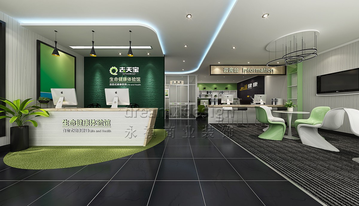 為了充分體現(xiàn)去天寶商城的“生命健康”特征,永祺設(shè)計(jì)師以現(xiàn)代簡(jiǎn)約風(fēng)格為主,清新田園風(fēng)格為輔,并融入科技與療養(yǎng)元素,嚴(yán)謹(jǐn)中正,不乏時(shí)尚感。整體設(shè)計(jì)色調(diào)定為綠色與白色,既簡(jiǎn)潔美觀,又清新自然,再以深灰色與木紋色進(jìn)行點(diǎn)綴,素雅且莊重。功能布局強(qiáng)調(diào)合理與實(shí)用,各區(qū)連貫暢通,人流動(dòng)線清晰,空間通透,視野良好。