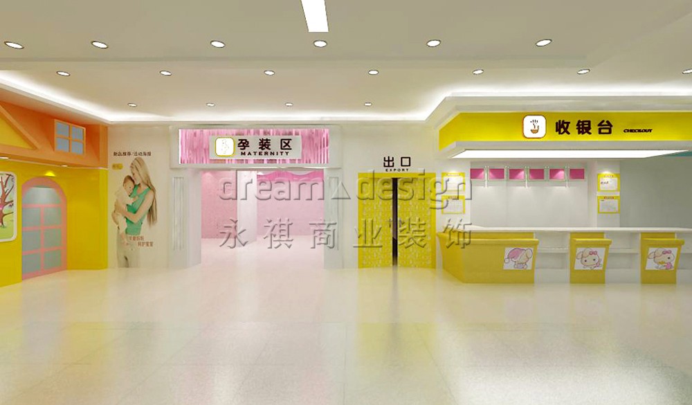 咿呀孕嬰童是孕嬰童專用物品連鎖店面,在空間色調(diào)上以暖色及純色為主,顏色溫和,線條靈動(dòng),精心考慮了孕婦及兒童在環(huán)境中停留感受,做到與建筑空間的融合與協(xié)調(diào)。