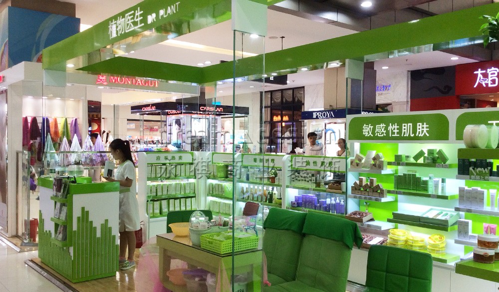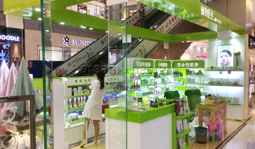 植物醫(yī)生主打植物提取為核心,所以店面色調(diào)以綠色為主,讓顧客感覺更安全放心,感官體驗也比較好