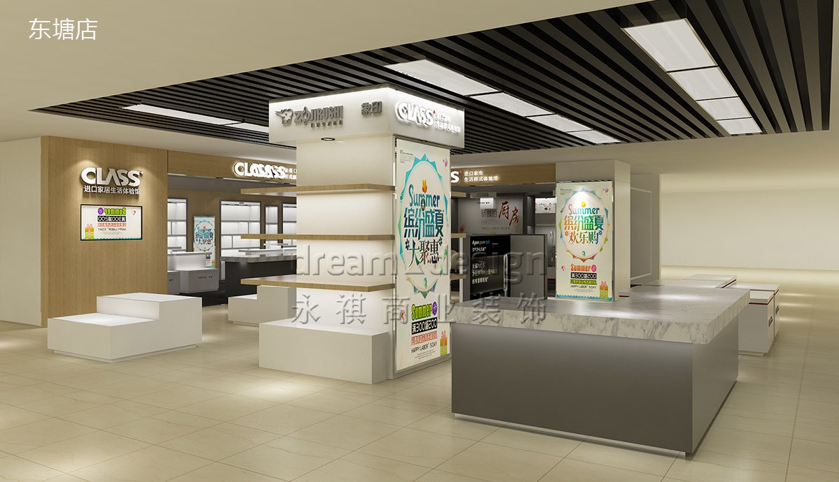 長沙市樽致百貨貿易有限公司,創(chuàng)立于2007年,自創(chuàng)立之日,一直依托于國際知名家居品牌,致力于打造健康、舒適、高端和高品質的家居生活。公司已經進駐友誼、平和堂、王府井、步步高、海信、德思勤等湖南省內30余家高端百貨商場和地域市場。并開創(chuàng)“Relax Life ”“Class +”家居生活體驗館品牌,將為越來越多消費者的家居生活帶來改善和提質,以及提供更好的體驗和服務。樽致找到永祺商裝,希望我們?yōu)槠溥M行終端形象的設計與建設,根據(jù)其品牌定位,打造全新的“CLASS+進口家居生活館”,營造出一種具有精致生活品質感的空間氛圍。