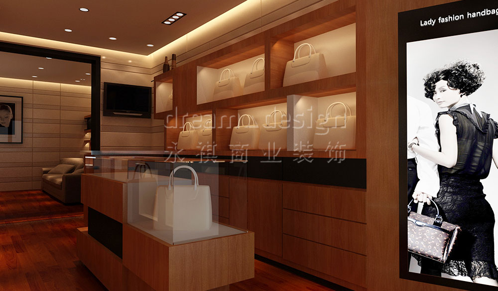 時(shí)尚包包是都市女人的最愛,唯美的店面設(shè)計(jì)就像品嘗經(jīng)典美食前的餐前酒,讓人欲罷不能卻又對(duì)“主角”飽含期待。