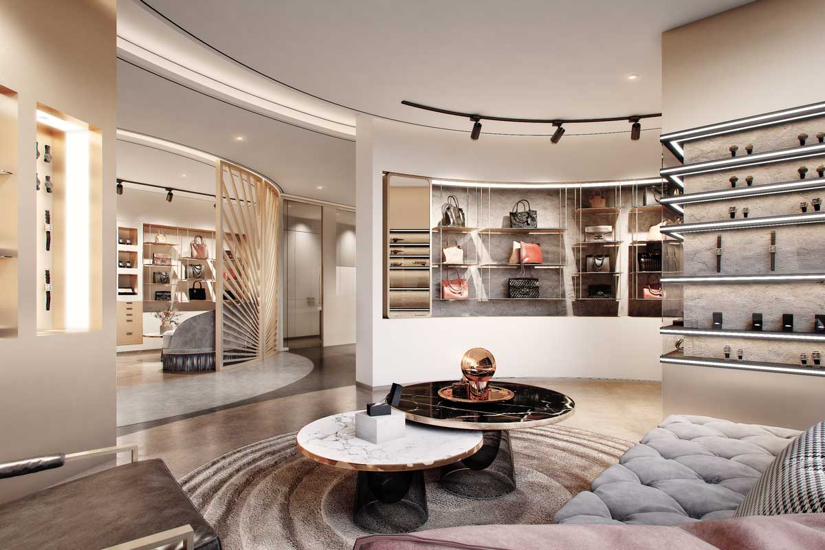 永祺此次設(shè)計(jì)打破陳規(guī),主打國際輕奢風(fēng)格,采用“弧線”的元素分割空間,增強(qiáng)空間的流動(dòng)感。整個(gè)空間使用了大量的玫瑰金,突出奢侈品的品質(zhì)感。展柜的設(shè)計(jì)以“產(chǎn)品陳列”為第一要義,全方位的展示產(chǎn)品的特性,希望給用戶提供更優(yōu)質(zhì)的購物體驗(yàn)。