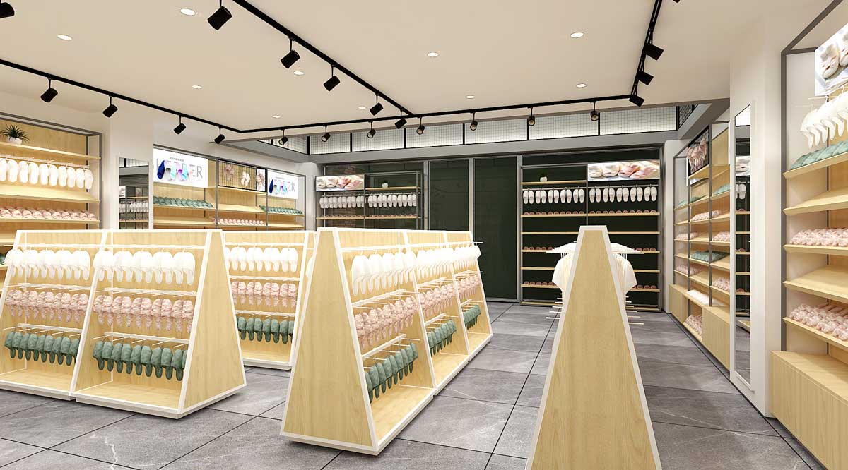 行業(yè)細(xì)分已成為趨勢(shì),糊涂鞋業(yè)是一種新型業(yè)態(tài),寬敞的過(guò)道、整齊的陳列、簡(jiǎn)約的色調(diào),都是永祺商裝設(shè)計(jì)師為其堅(jiān)持的空間法則,簡(jiǎn)潔的純色地磚,天然的木質(zhì)材料,合理的空間布局,給顧客眼前一亮的感覺(jué)。