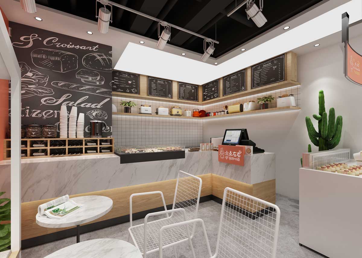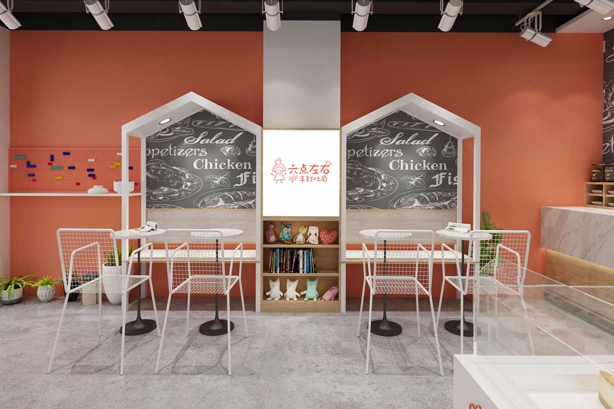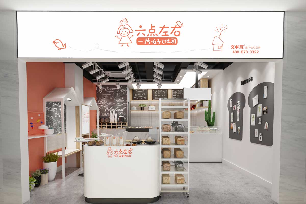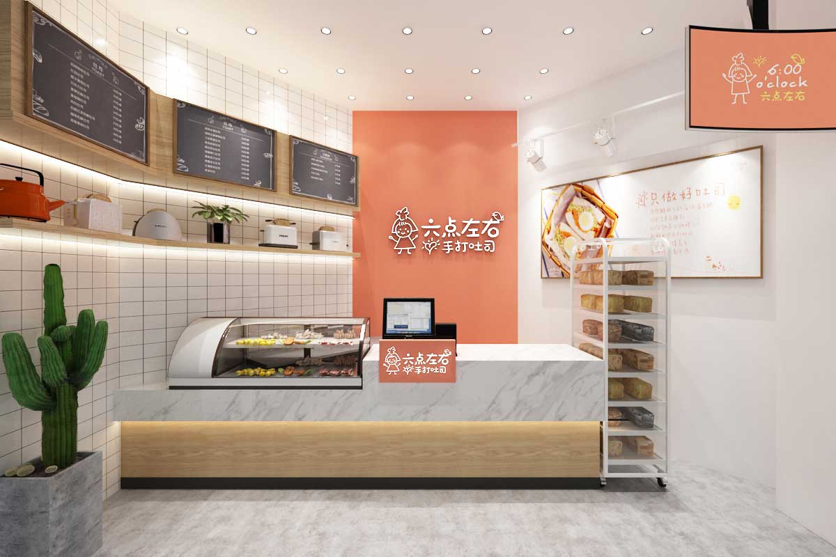 六點左右吐司配備透明玻璃窗和全透明制作間,可以讓消費者近距離觀看制作流程,使消費者更加放心吐司的質(zhì)量,安心享受六點左右吐司所帶來的健康食品。永祺商裝已與“六點左右”合作:德思勤店、華創(chuàng)店、凱德壹中心、運達店等,為這幾家店面量身定制效果圖與施工圖,只求將連鎖品牌個性充分發(fā)揮。