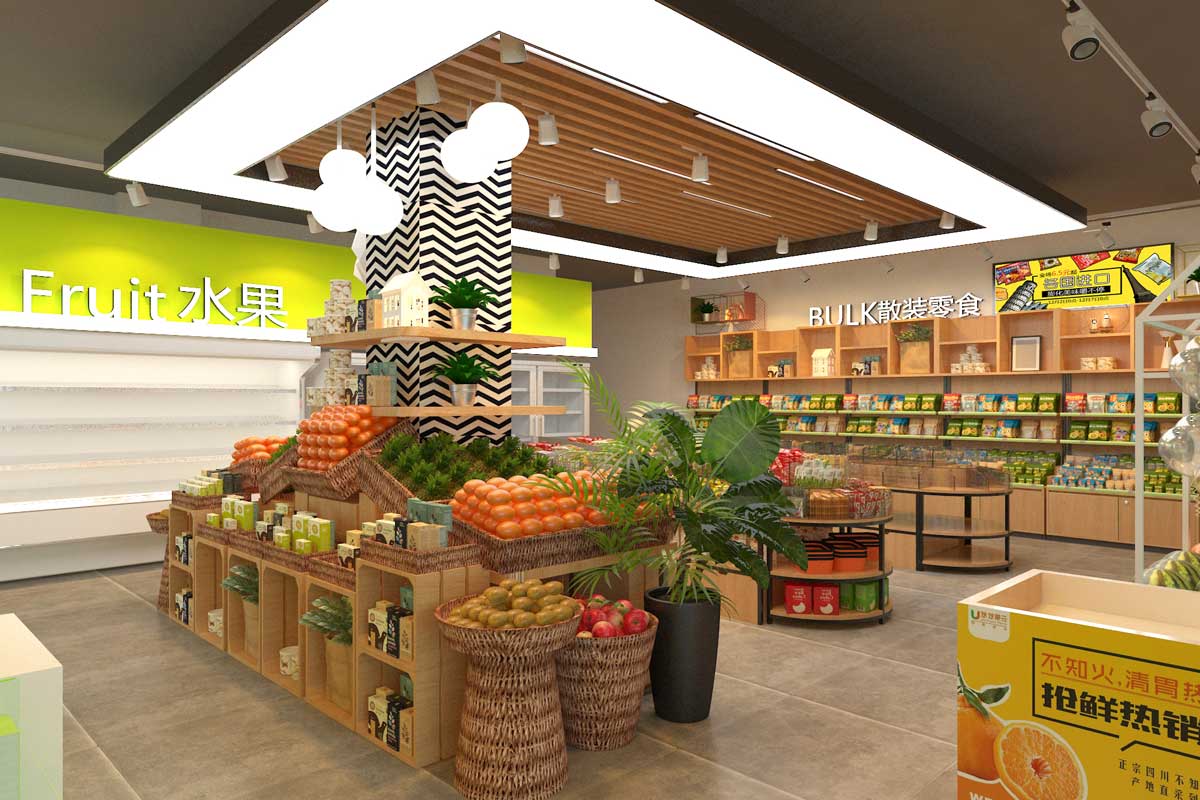 果寶記位于懷化沅陵,基于目前水果市場店面形象年輕化,時(shí)尚化,果寶記經(jīng)過幾年的發(fā)展雖然有了穩(wěn)定的客流,但沒有更進(jìn)一步的發(fā)展。果寶記舍近求遠(yuǎn),從懷化找到遠(yuǎn)在長沙的永祺裝飾進(jìn)行空間設(shè)計(jì),永祺總結(jié)服務(wù)過的多個(gè)水果品牌的經(jīng)驗(yàn),為果寶記提供了專業(yè)的空間設(shè)計(jì)及展柜制作服務(wù)。