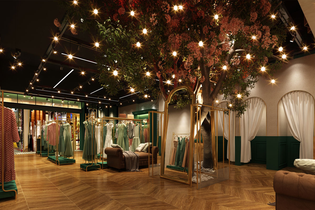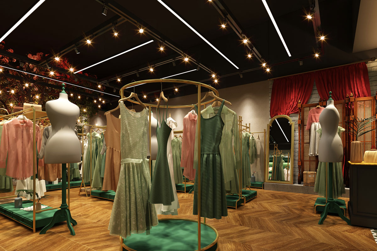 永祺此次的設(shè)計主題為優(yōu)雅女人,使用深棕色的木質(zhì)結(jié)構(gòu),作為設(shè)計主元素,突出品質(zhì)感。采用歐式古典風(fēng)格的吊燈和衣柜,營造出有溫度且充滿品質(zhì)感的選購空間。整個空間設(shè)計錯落有序,富有觀賞性,力求給消費(fèi)者構(gòu)造一個愉快舒適的購物環(huán)境。