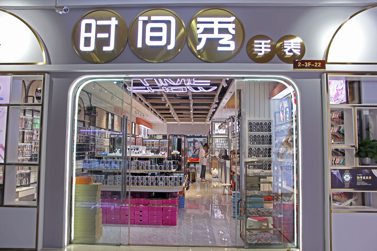 時間秀位于長沙高橋現(xiàn)代商貿(mào)城,位于最火爆的批發(fā)市場。總面積97㎡。主營手表零售及批發(fā)。 銷售男表、女表、兒童表、鬧鐘等各式樣鐘表。