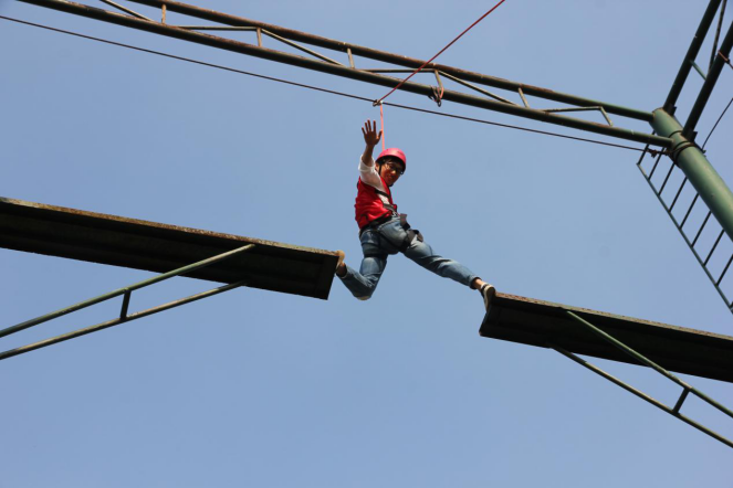 下午準備的拓展項目則更加刺激,玩的就是心跳,“跨越斷橋”——據(jù)說恐高癥必玩,于是,公司隱藏的各位高手都展露了自己的看家本領(lǐng),一個個英姿颯爽,帥氣逼人。